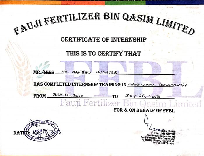 I started my career with FFBL as an intern. Foundation University selected me for this opportunity because of my good performance as a coder in the class. I worked on the website of the FFBL.com and learned about SAP-based systems and networking.